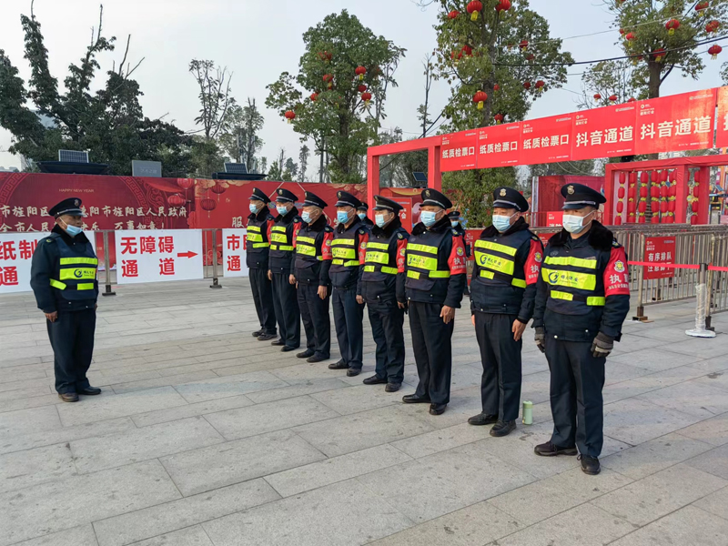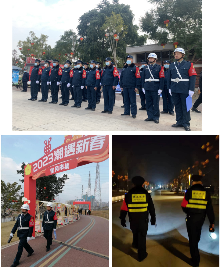 2023年的春节随着疫情逐渐好转,市政府在金螺湾公园举办了德阳市第十四届灯会,经开区管委会在柳梢堰公司举行了“2023潮遇新春”大型文艺活动,作为一支强有力的辅警队伍,公司义不容辞,和兄弟公司一起承担了两项活动的安全守护工作。
