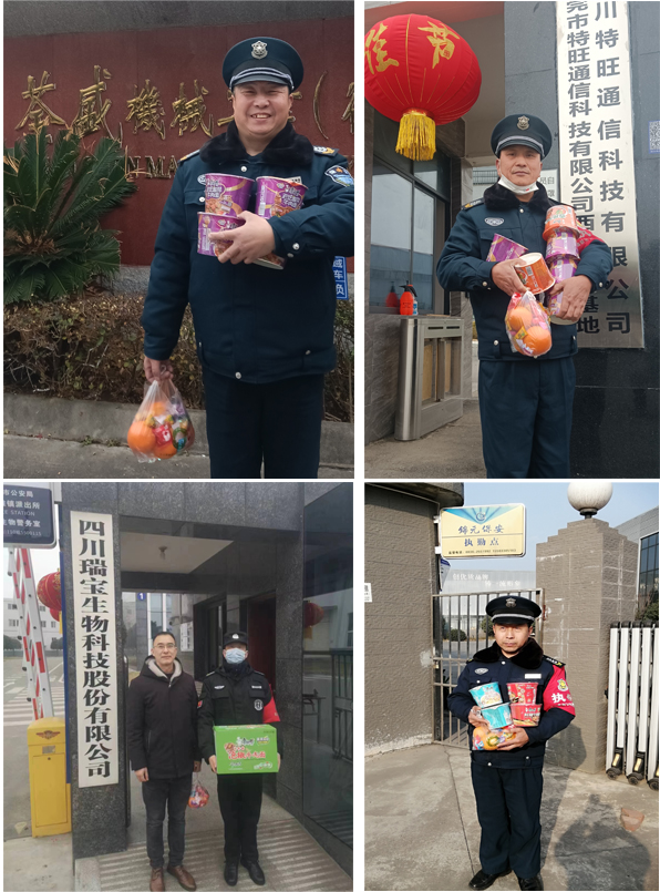 春节,是中国人万家团聚的日子,我们的保安员却因为身上的责任与担当,放弃了和家人团聚的机会,默默地坚守在自己的工作岗位上,用平凡的身影诠释着安全守护者的职责。公司管理层带着礼品与关怀对在岗队员进行了慰问,并为他们送去了节日的祝福。