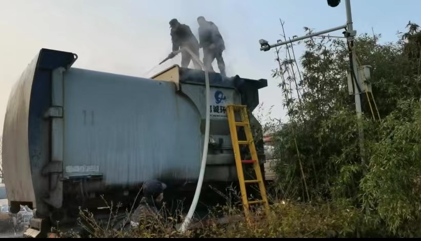 2023年1月5日早上8:30分,广汉市倍诚环保垃圾车川F28511行至和新环保发电厂大门口时,车身冒起了浓浓的黑烟,且伴随阵阵烧焦的味道,当班保安员发现后迅速行动,按公司应急预案操作,熟练地连接消防水带对该车辆进行降温处理。随后,单位安全部主管到场,在他的指挥下,三位保安员圆满处置该风险,如果未及时发现并处置,一旦车内垃圾燃烧起来,火星蹦到旁边的垃圾池,将会引起垃圾池沼气爆炸,后果不堪设想。事后,事故车单位送来锦旗对保安员进行感谢,甲方单位领导对当班保安员工作认真负责、高度的警觉性给予了充分的肯定及通报表扬。