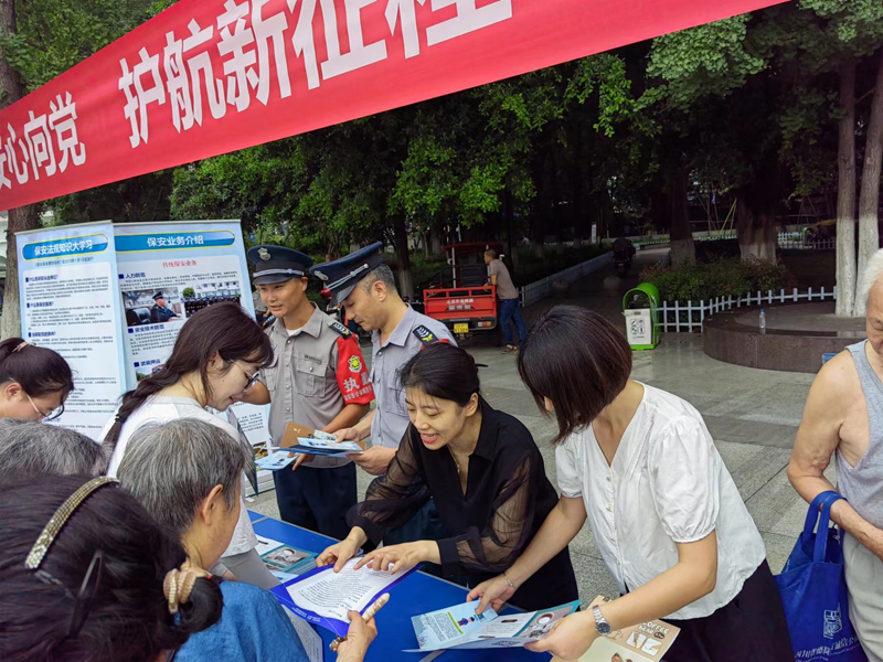 为进一步加强保安行业宣传,提升保安队伍形象,动员广大保安企业和保安员积极投身全国公安机关夏季治安打击整治行动和成都大运安保,做好协助维护社会治安和防汛救灾各项工作,公安部决定在7月24日组织开展以“保安心向党、护航新征程”为主题的保安行业年度主题宣传日活动。德阳市公安局治安支队在7月24日上午9点在文庙广场举行“保安心向党、护航新征程”保安行业主题宣传日活动。我公司积极配合活动安排,组织数名保安员及工作人员到现场进行布展宣传工作,向热心市民宣传保安服务管理条例、“警保联动”工作、涉爆涉枪涉刀违犯罪行为等相关内容。