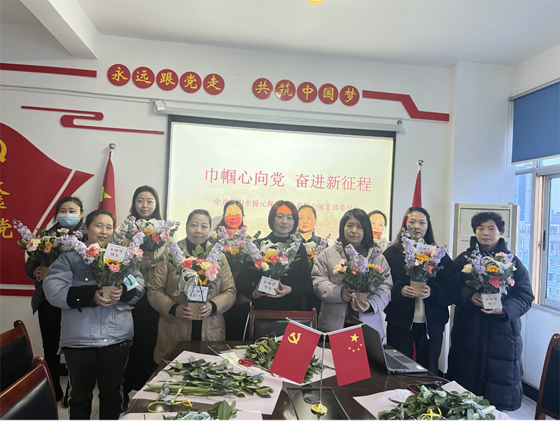 为深入贯彻落实党的二十大精神和习近平总书记关于妇女儿童和妇联工作的重要论述,切实加强和发挥妇联组织作为党联系妇女群众的桥梁和纽带作用,牢牢把握引领联系妇女儿童的根本要求,公司支部结合自身工作实际,在节日当天召开了“巾帼心向党,奋进新征程”的主题座谈会及插花活动。并落实了一系列切实有效的维护女职工权益的措施,如安排女职工进行体检、为她们购买妇女安康险、发放节日慰问品等等。以此激励广大女员工立足岗位,争奉献、求进步、谋发展,为推进锦元保安稳定发展做出新的贡献。