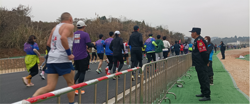 参与活动执勤的保安员提前三小时便进入了现场,和公安干警一起共同确保赛道沿线的交通安全和秩序井然,一路保驾护航,为广大跑友和观众营造一个安全稳定的比赛环境。