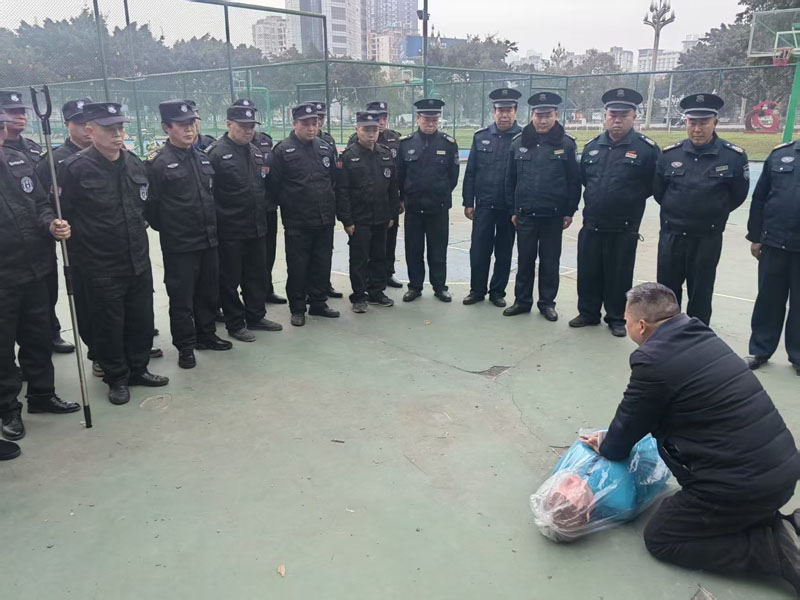 培训前发放了职业素质《行为规范》自我测评表,提高认识,加深理解,自觉增强自律意识,检验自身不足,对照纠错;培训中,围绕保安服务相关法律法规、职业道德规范、安全防范知识等展开深度讲解。通过典型案例分析与互动讨论,队员们深刻理解日常工作中的法律边界与责任义务,强化了依法执勤、文明服务的意识,对职业道德的内涵有了更清晰的认知,明确在工作中要始终坚守职业操守,维护公司形象;技能实操培训,令行禁止,训风严谨;模拟突发事件演练中,队员们迅速响应、密切配合,按照预案流程有序处置,有效提升了应急反应和协同作战能力。