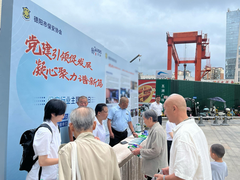 为深入贯彻落实公安部治安管理局、中国保安协会、德阳市公安局关于全国保安行业主题宣传活动 “党建引领促发展,凝心聚力谱新篇” 的工作部署,充分发挥党建工作在保安行业发展中的引领作用。由德阳市公安局主办、德阳市保安协会承办的 “7.24” 保安行业主题宣传活动于 2025 年 7 月 24 日在德阳市五洲广场成功举行。我公司作为德阳市保安协会副会长单位,积极参与此次宣传活动。